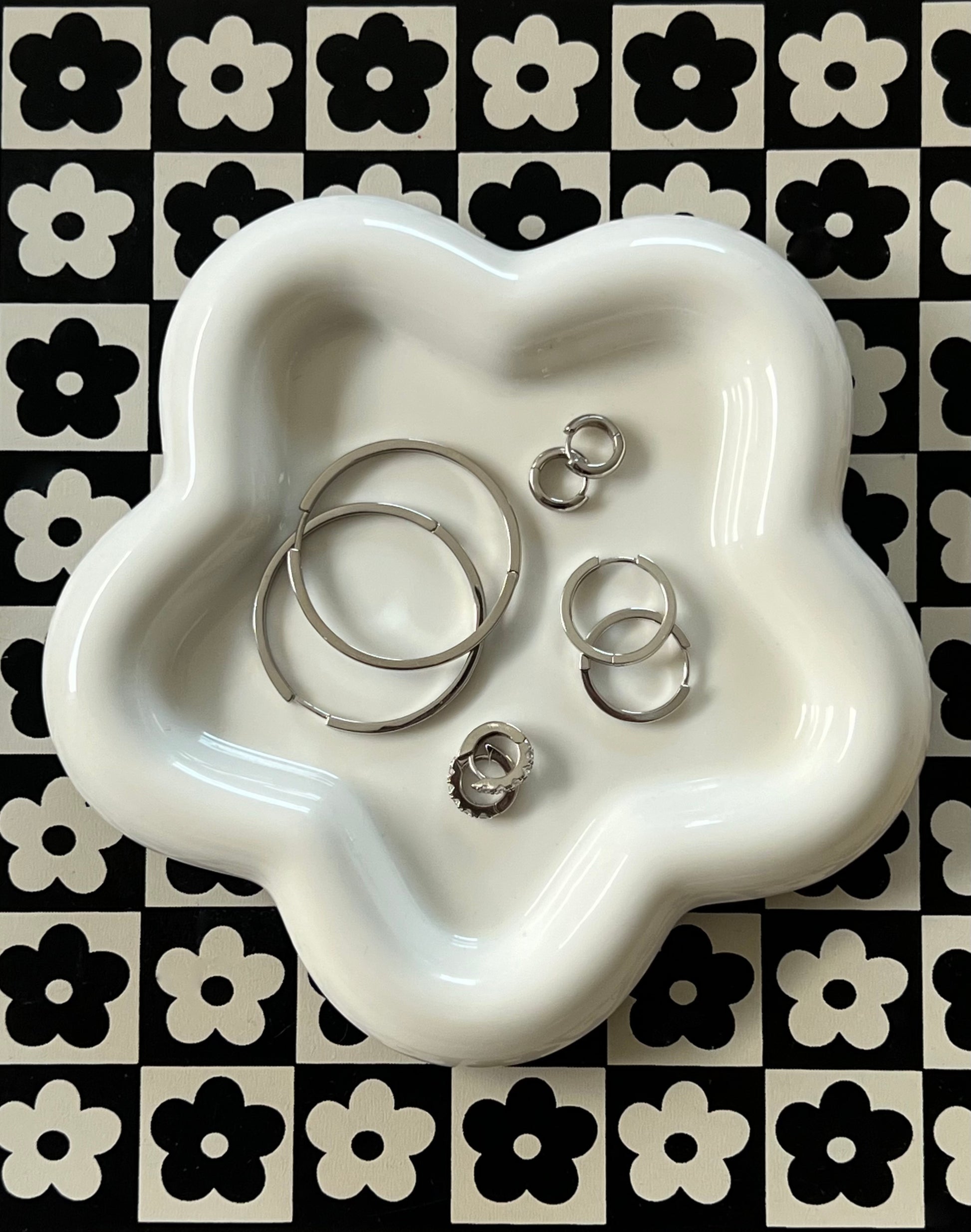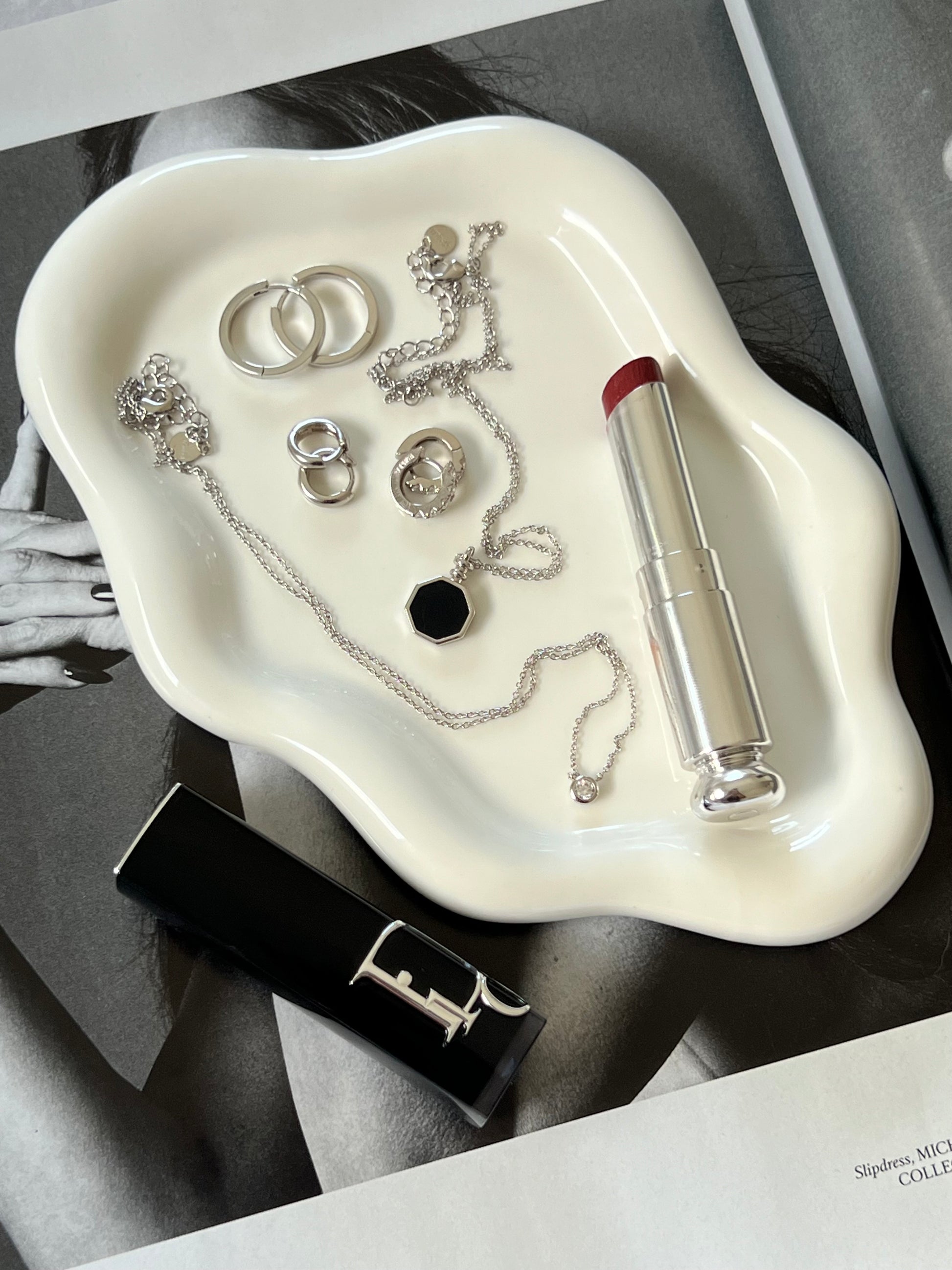 - Available in 18k gold plated brass and silver rhodium