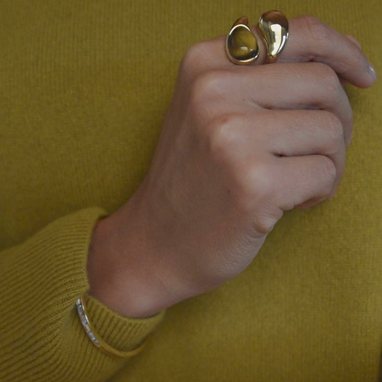 The Talia Tiger Ring features shimmering, golden-brown hues and a distinctive wrapped band, creating a captivating visual depth. Perfect for those seeking a bold yet refined accessory that transitions seamlessly from day to evening wear.